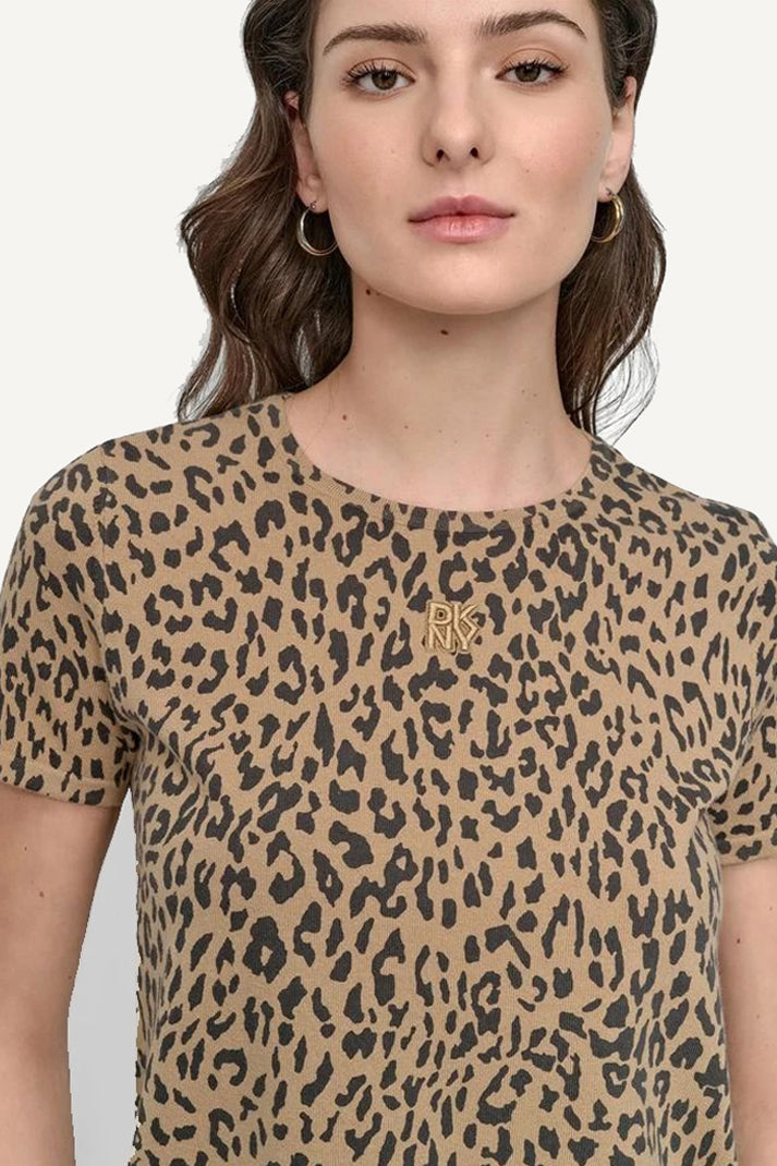 Unleash your wild side with this DKNY Cheetah Print Short Tee. Featuring a bold multicolour cheetah pattern, this versatile top adds instant flair to any outfit. Soft, breathable fabric ensures all-day comfort-perfect for elevating your everyday casual look.