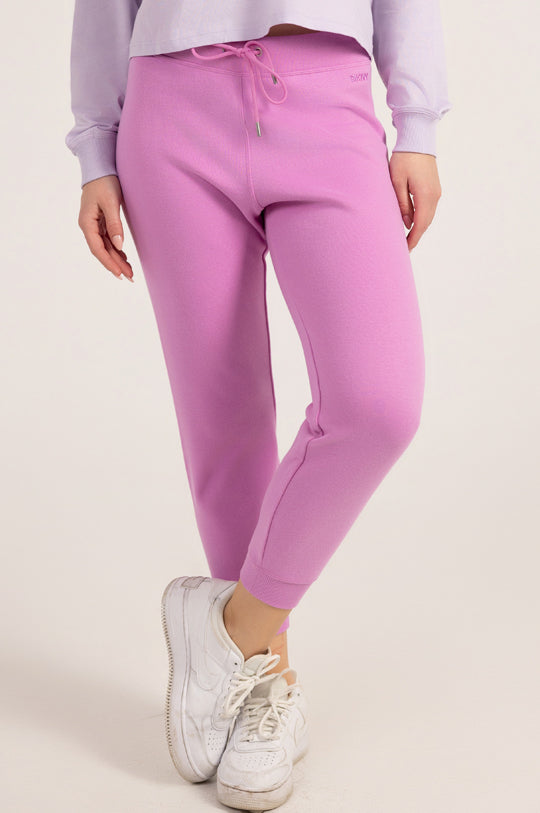 Elevate your casual wardrobe with DKNY's Embroidered Logo Taper Leg Ankle Length Jogger in vibrant fuchsia. Designed for comfort and style, these joggers feature a sleek tapered fit, ankle-length cut, and chic embroidered logo, perfect for any on-the-go fashionista.