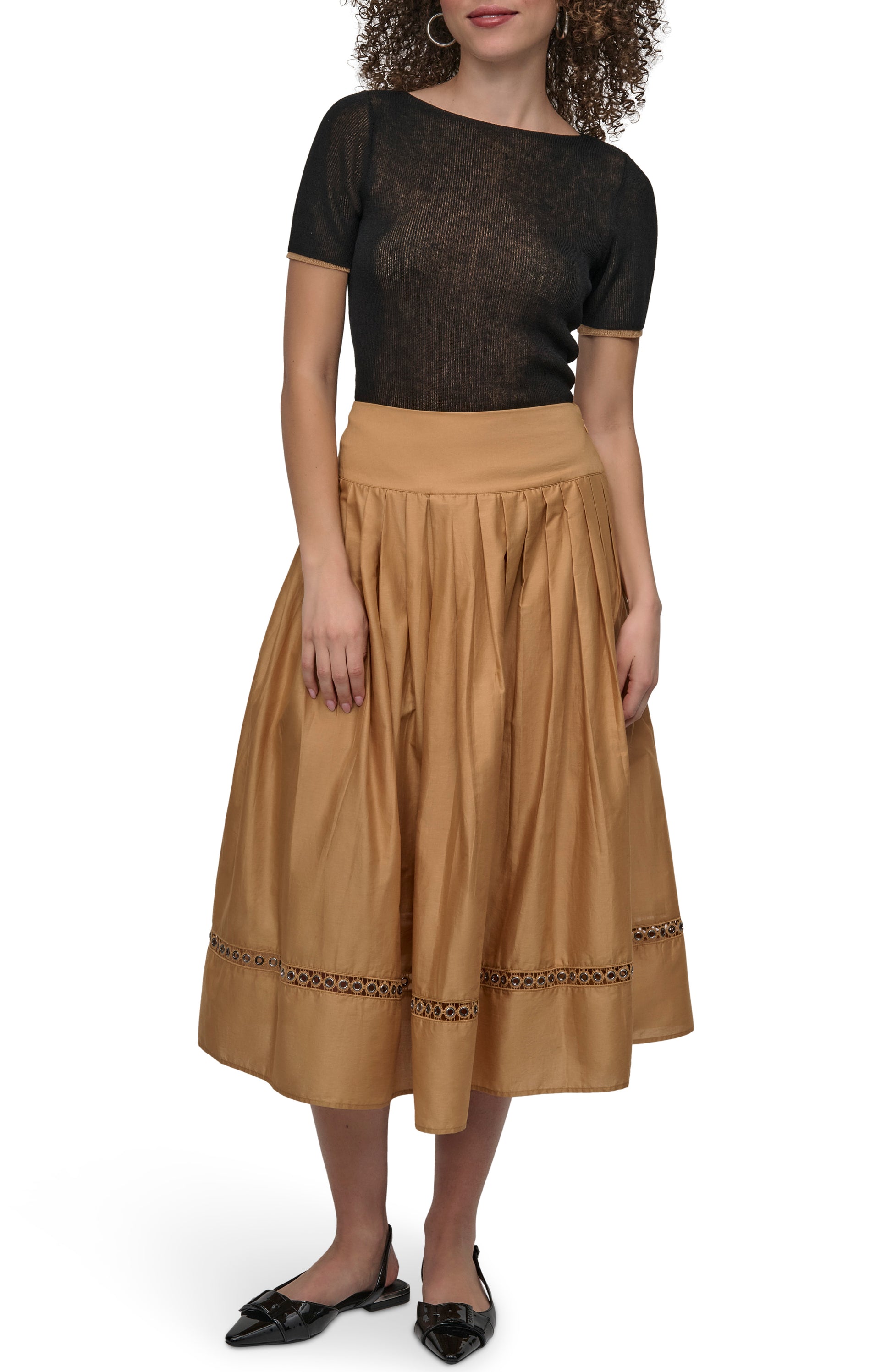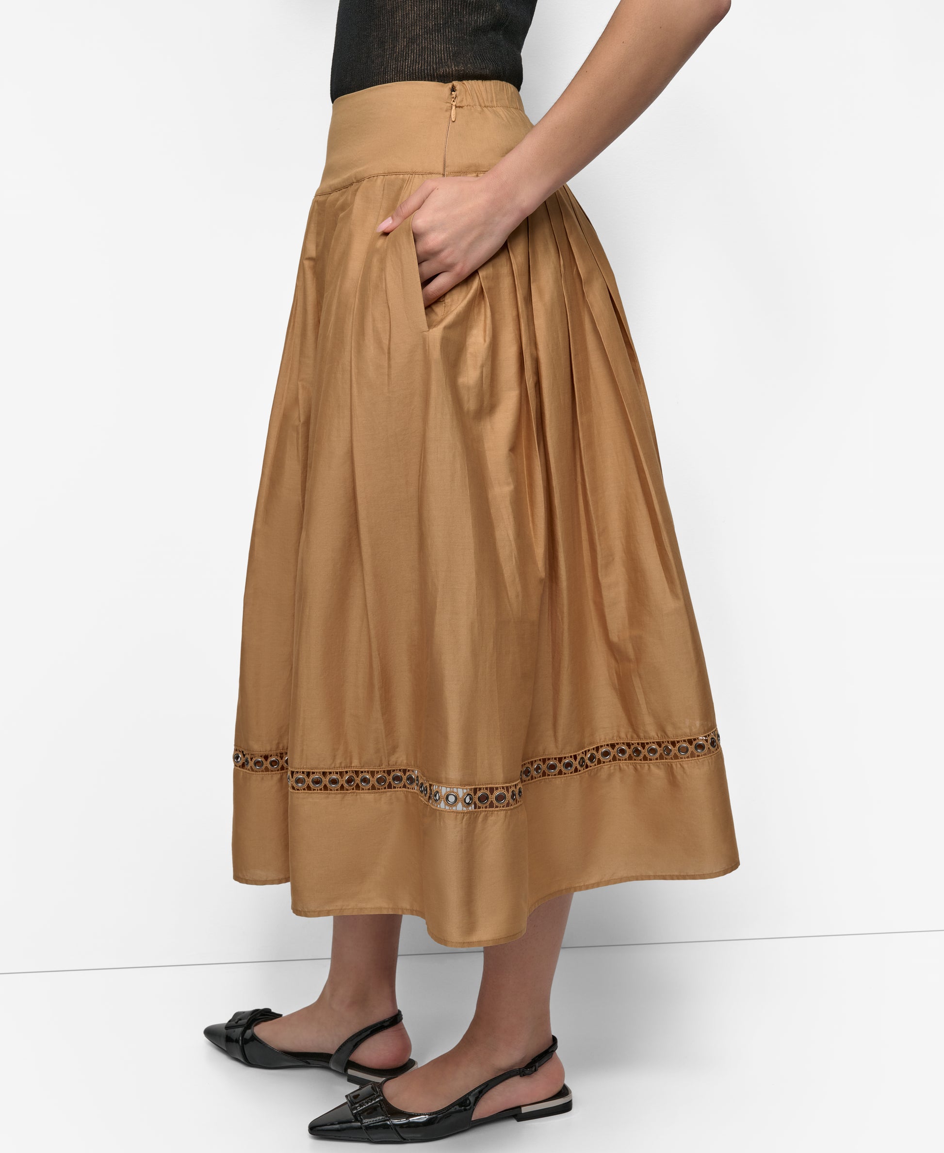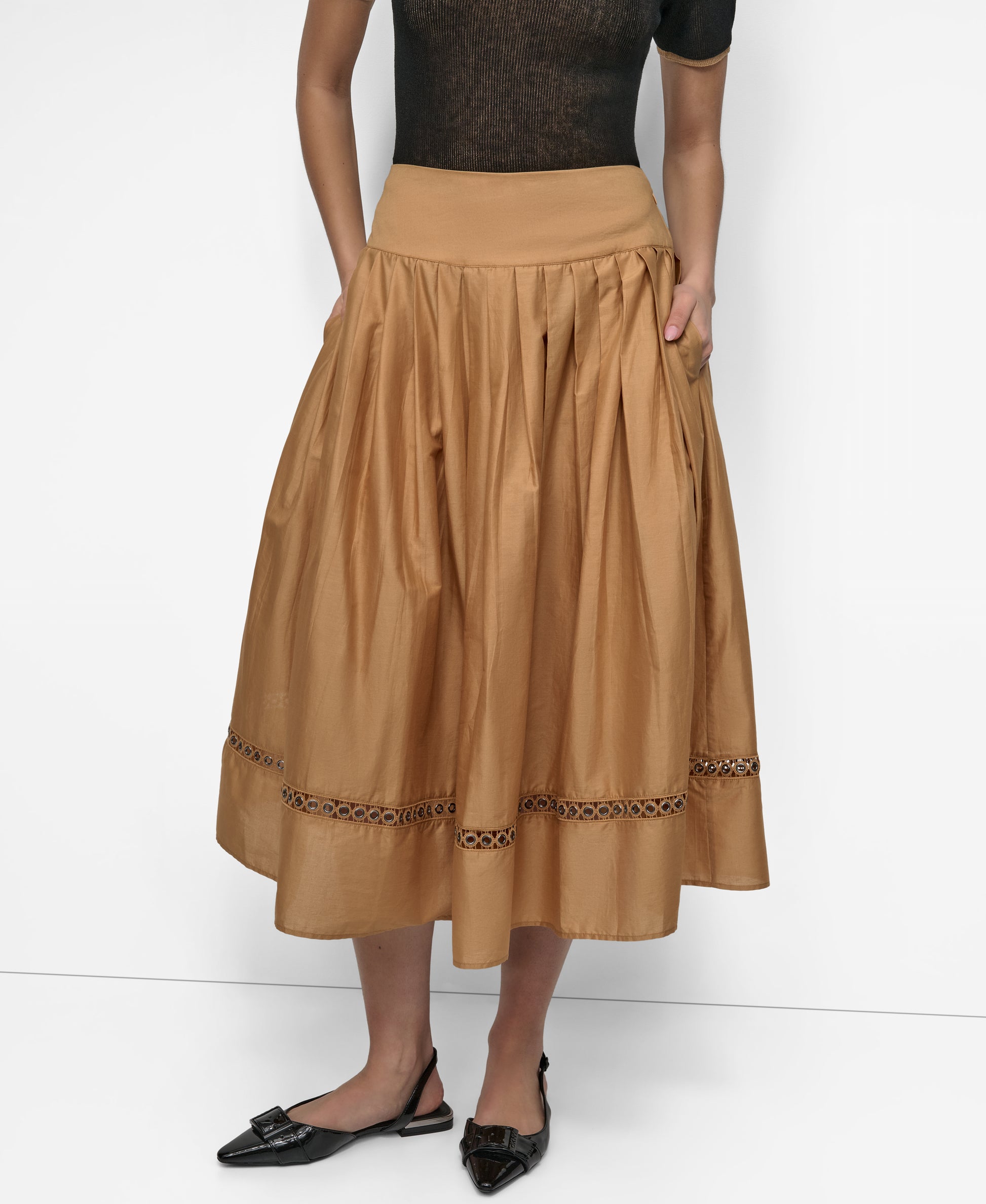 Elevate your summer wardrobe with this vibrant brown DKNY Drop Waist Voile Skirt. Crafted from lightweight, airy fabric, it features a flattering drop-waist silhouette and elegant flow. Perfect for effortless styling, day or night, and pairs beautifully with your favorite tops.