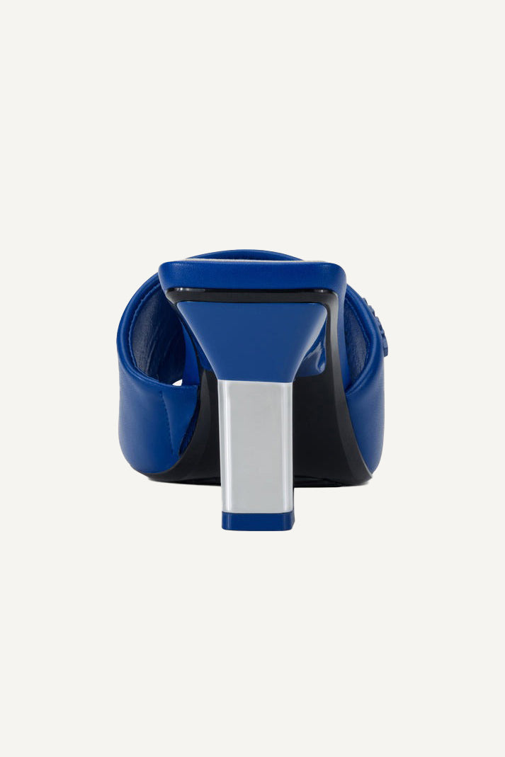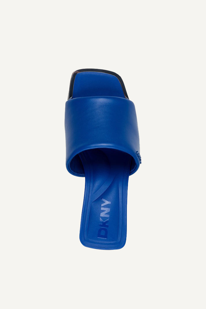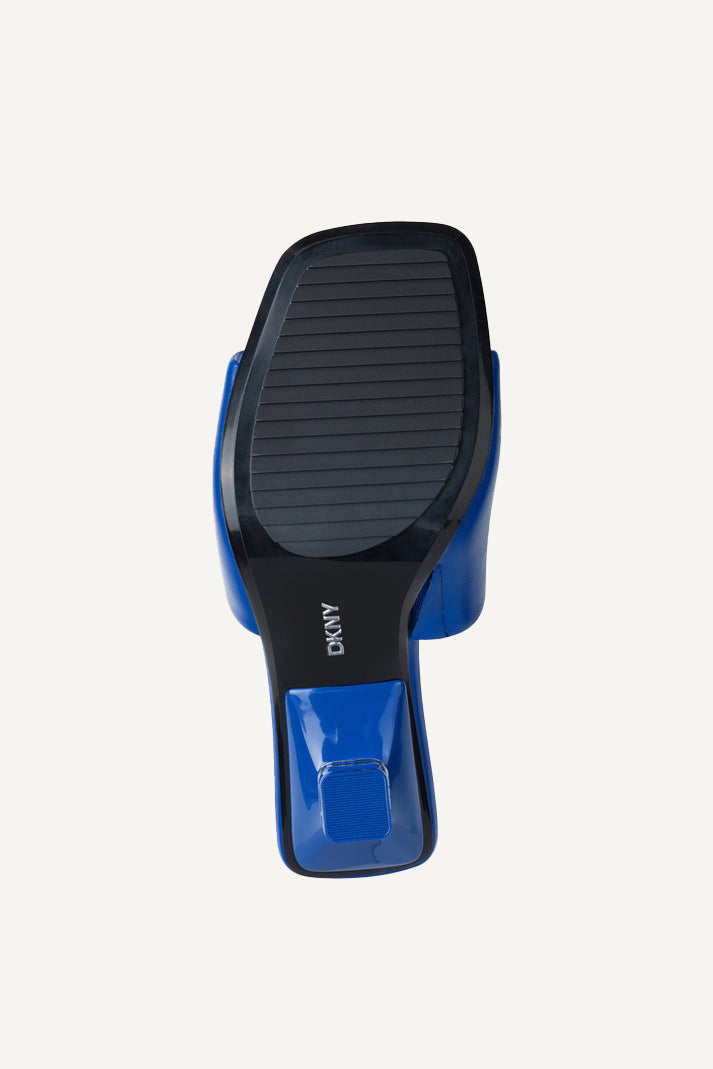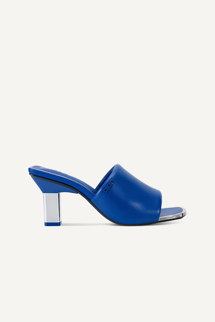 Elevate your style with the KELLEY HEELED MULE by DKNY. These chic blue shoes seamlessly blend sophistication and comfort, featuring a sleek design perfect for any occasion. An essential addition to your wardrobe, they promise to turn heads wherever you go.