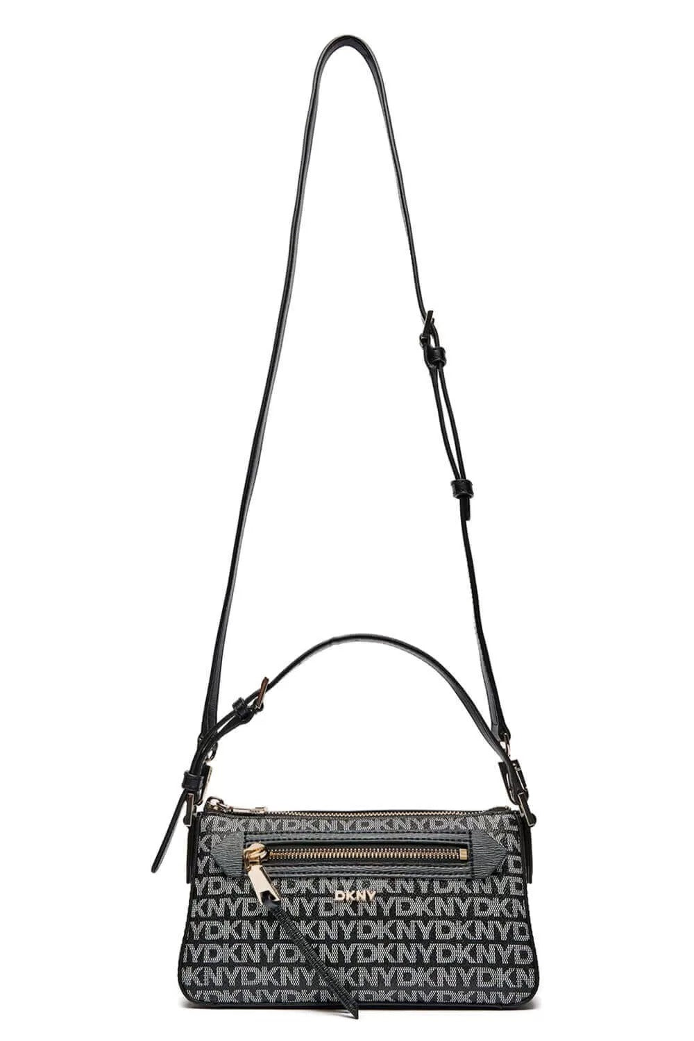Elevate your style with the DKNY Bryant Ave Small Top Zip Demi Crossbody Bag in classic black. This versatile accessory combines sleek design with functionality, offering a compact silhouette perfect for on-the-go chic. A must-have for any fashion-forward wardrobe.