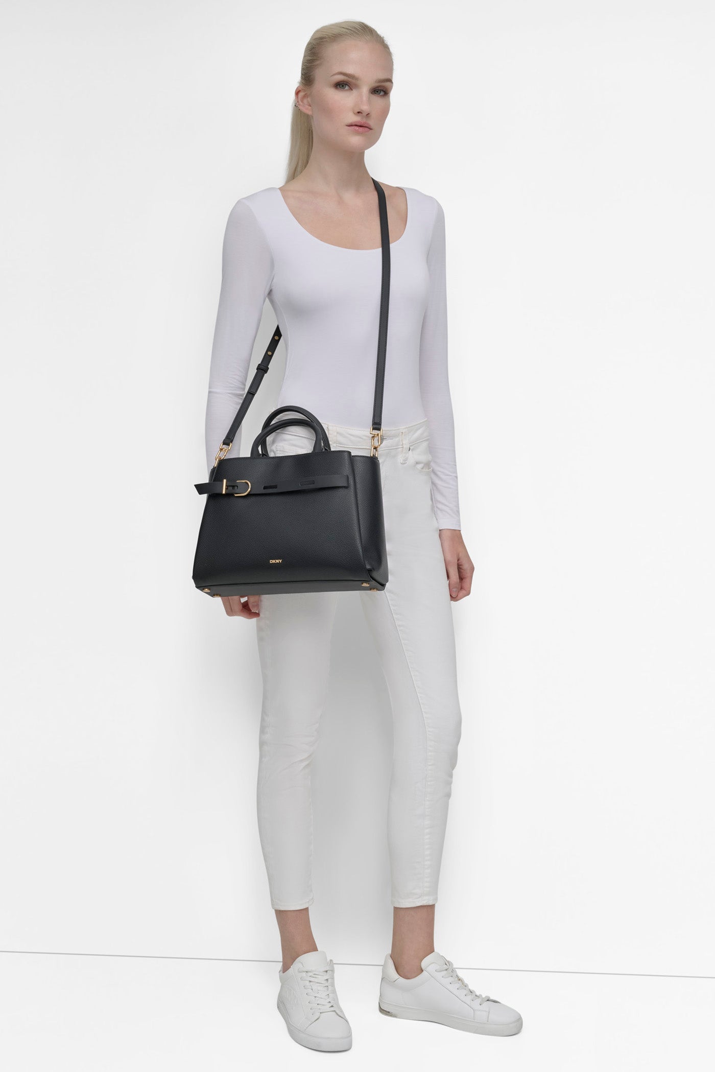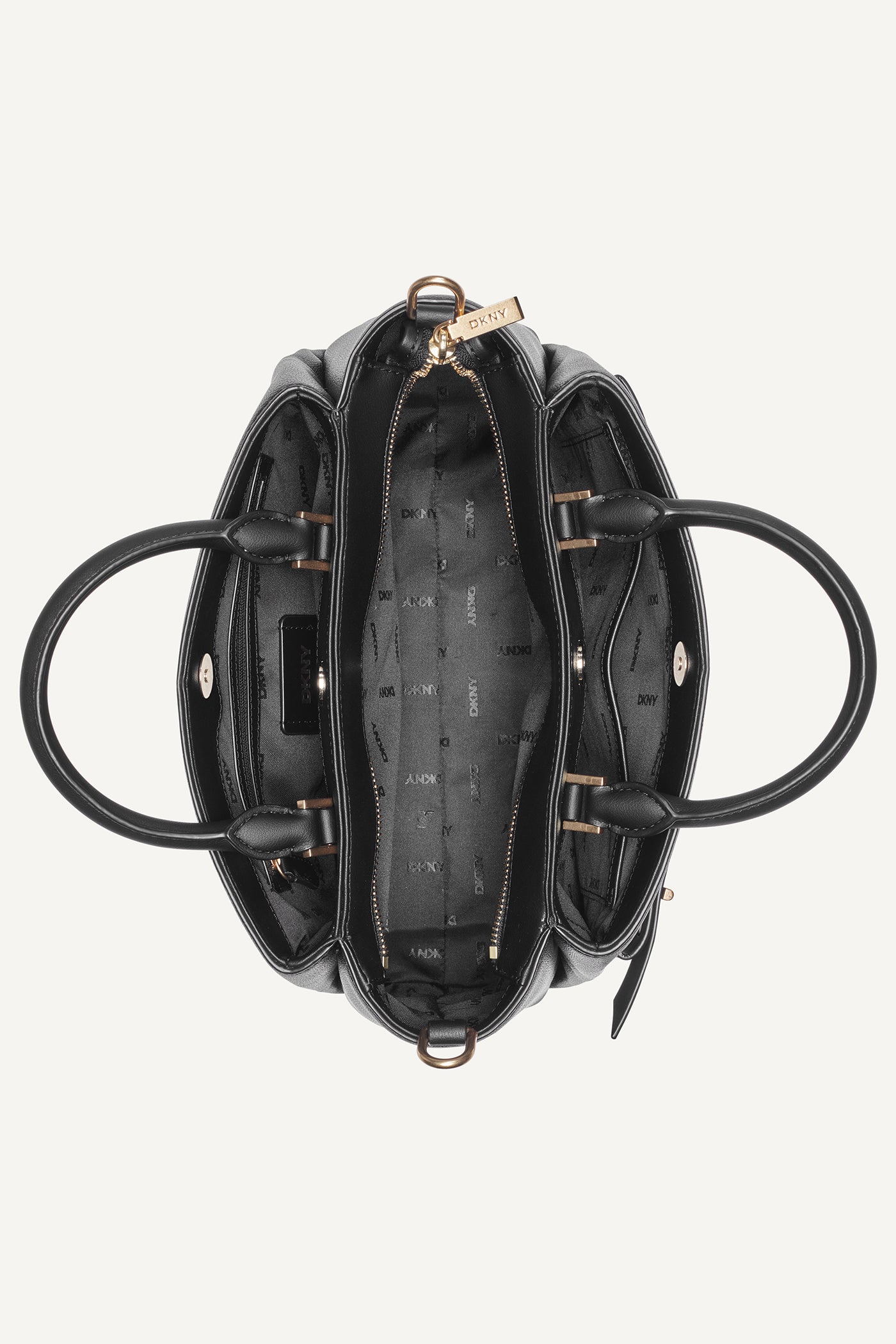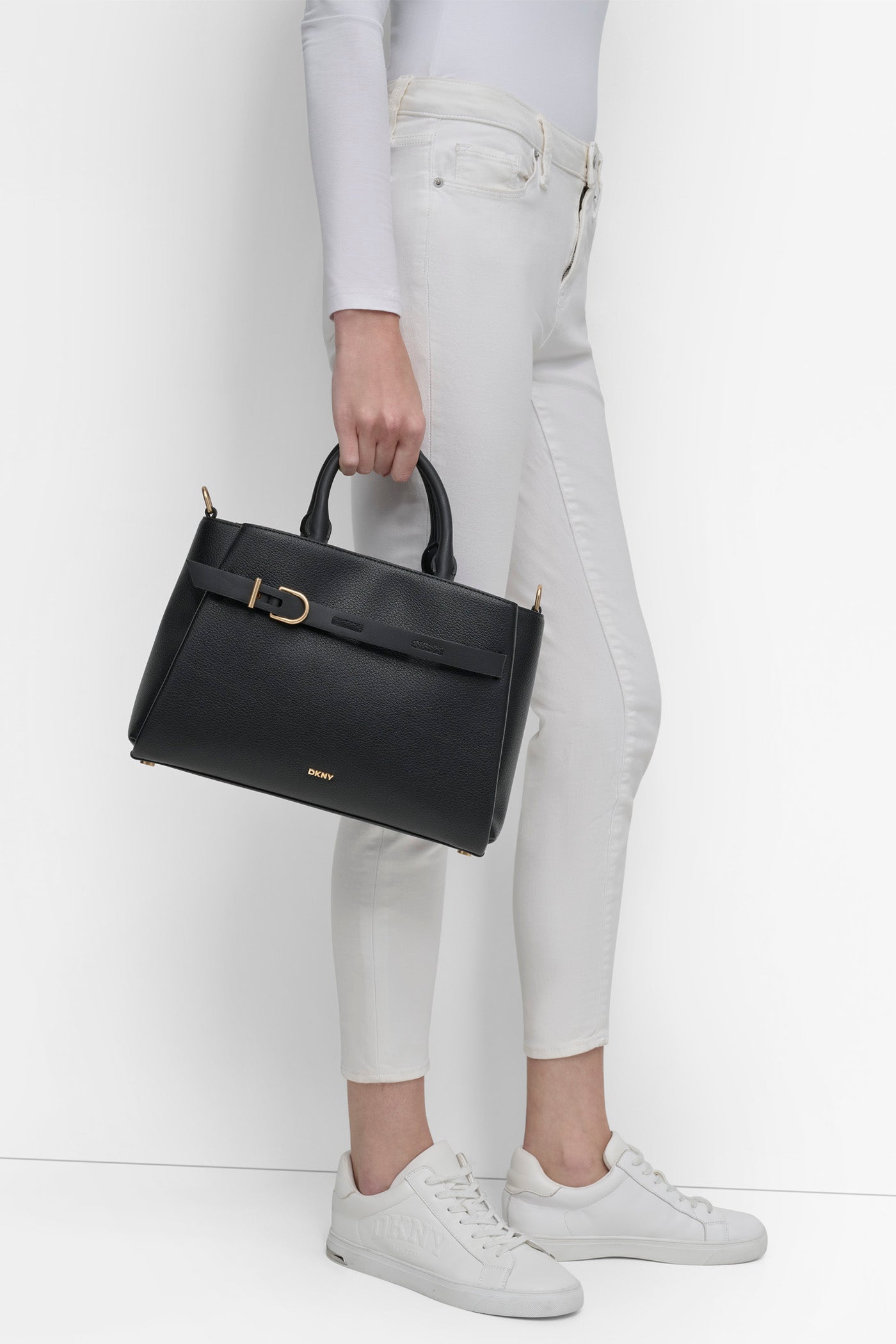 Elevate your ensemble with the DKNY Onyx Medium Satchel in classic black. Perfect for the holiday season, this versatile bag combines elegance and functionality, featuring chic design and ample space for essentials, making it a must-have accessory for any occasion.