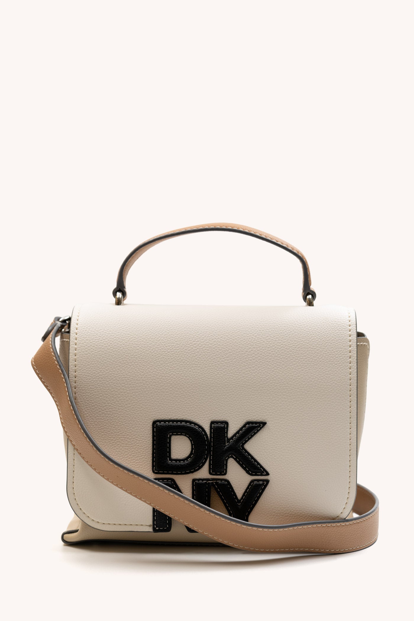 Elevate your style with the NICOLE TOP HANDLE SATCHEL by DKNY. Crafted in crisp white, this sophisticated top handle bag features a structured silhouette, polished gold-tone hardware, and ample space-perfect for carrying your daily essentials with effortless elegance.