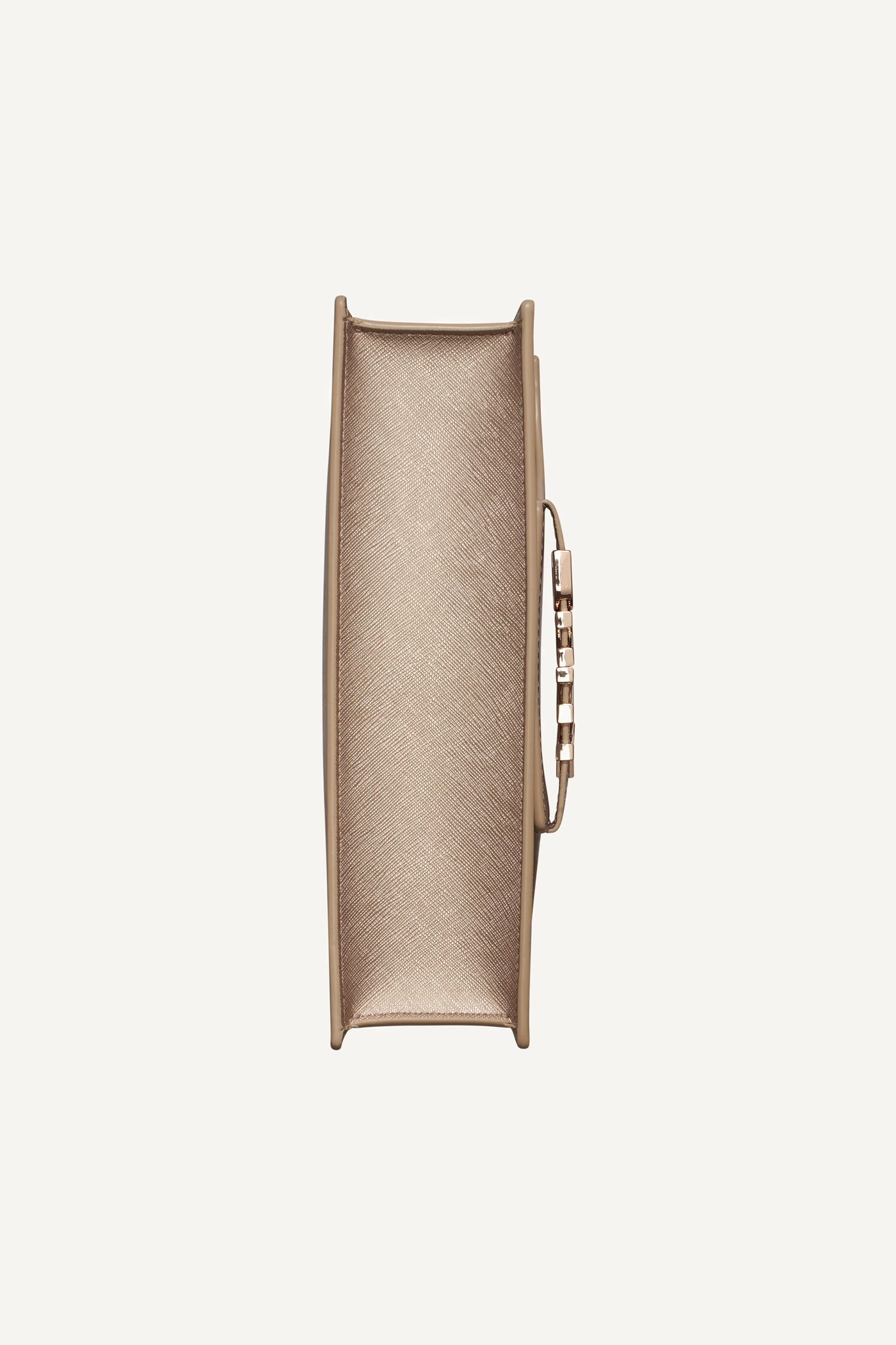 Elevate your ensemble with the DKNY AVRIL TH FLAP SATCHEL in radiant gold. This chic top handle bag features a structured silhouette, elegant flap closure, and gleaming hardware perfect for making a statement at both daytime events and glamorous evenings.