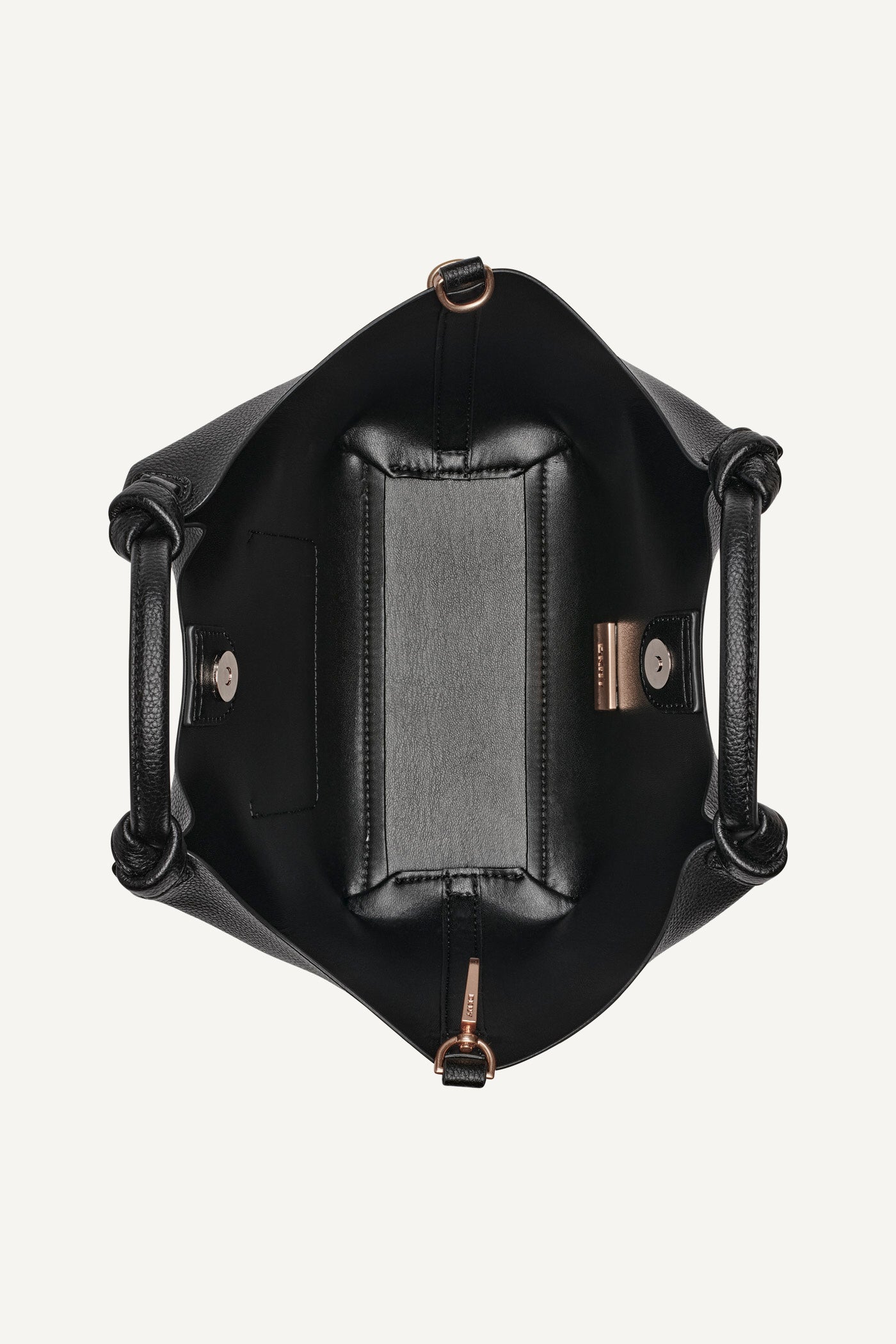 Effortlessly chic, the DKNY Paula Small Tote in classic black delivers everyday versatility. Crafted with precision, its compact size fits essentials without bulk. Gold-tone hardware and structured silhouette elevate any outfit, making this a sophisticated, modern must-have tote bag.