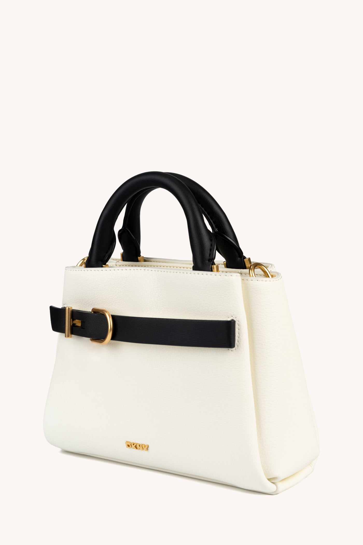 Elevate your everyday style with the DKNY ONYX Small Satchel Crossbody in classic white. This chic and compact crossbody bag features sleek gold-tone hardware, an adjustable strap, and multiple compartments-perfect for keeping essentials organized and hands-free on the go.