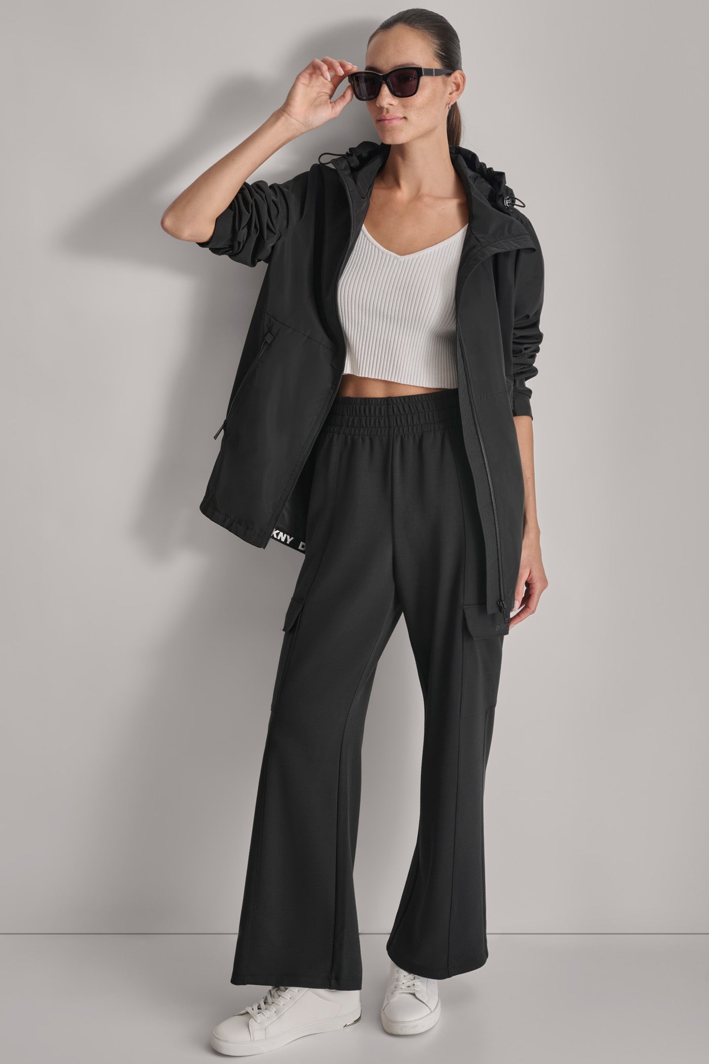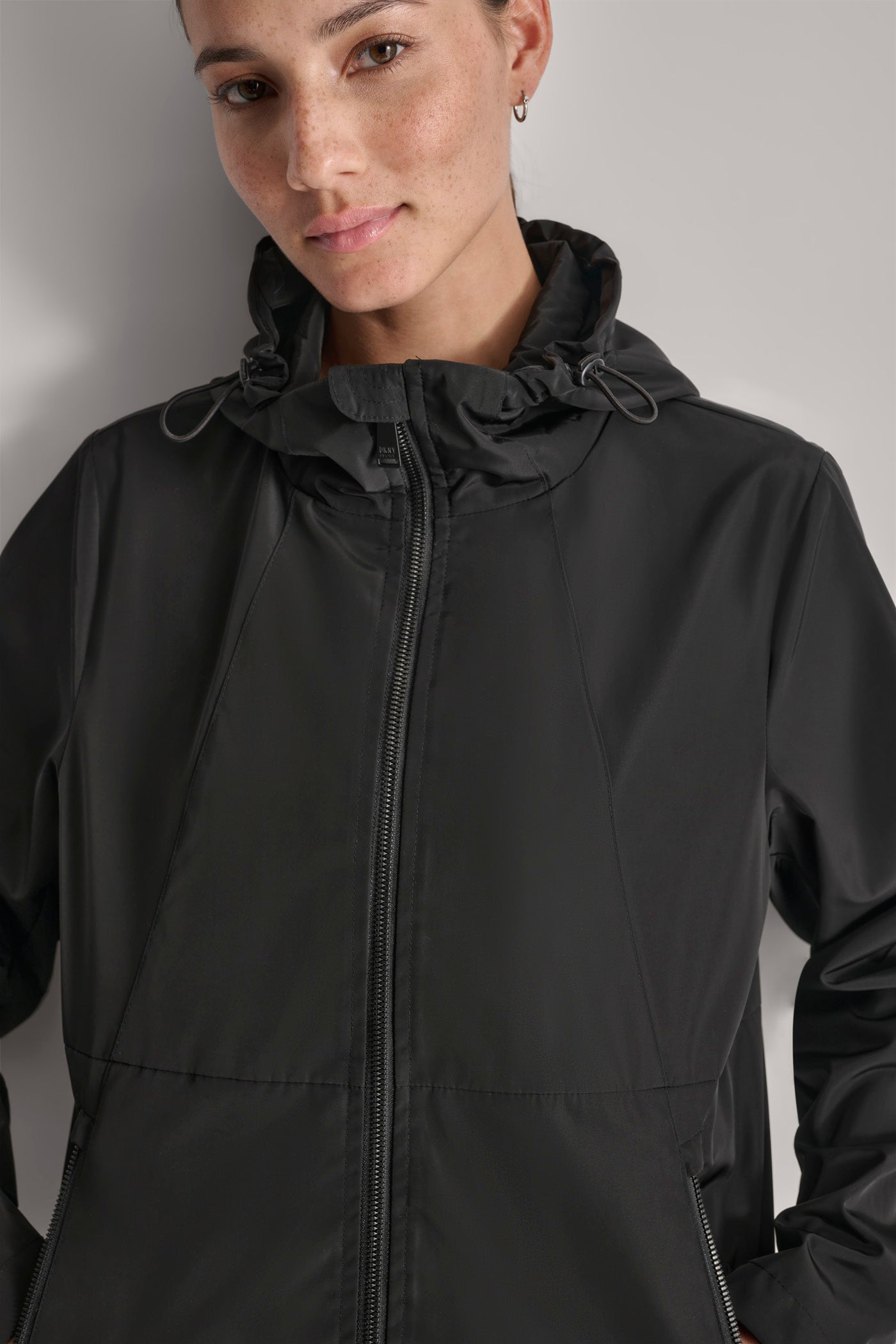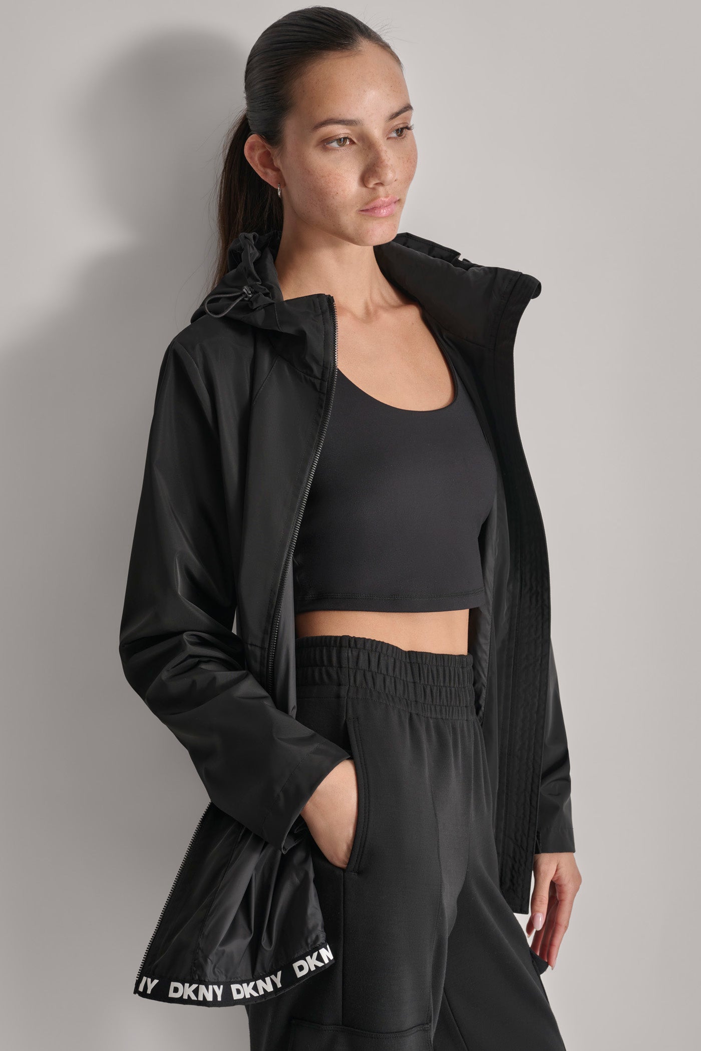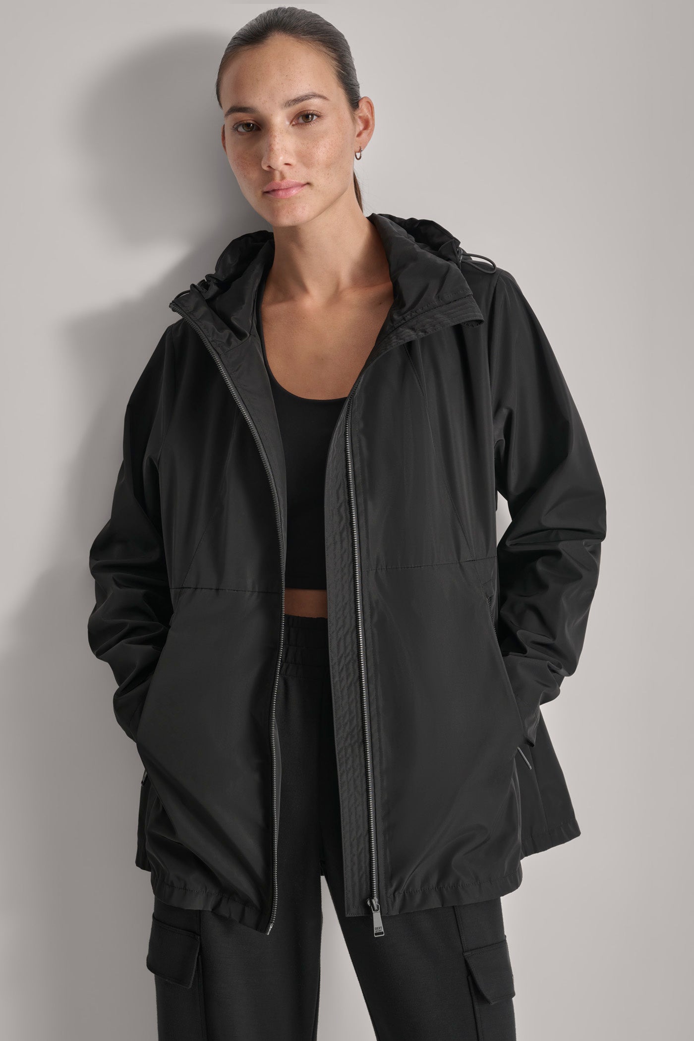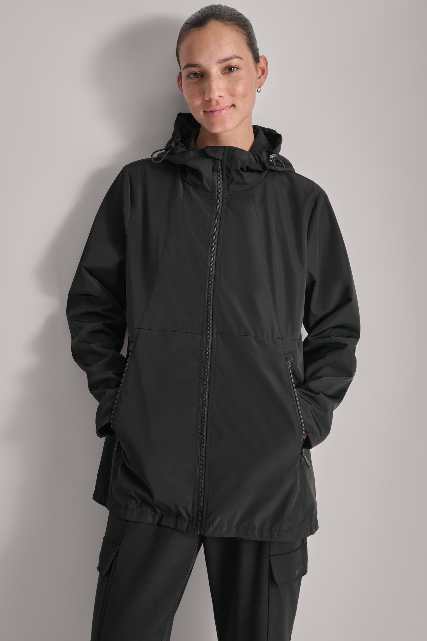 Elevate your outerwear with the FULL ZIP WINDBREAKER WITH HOOD from DKNY. This sophisticated black windbreaker combines sleek style and practical design, offering optimal protection against the elements. The full-zip closure and adjustable hood ensure a perfect fit for any adventure.