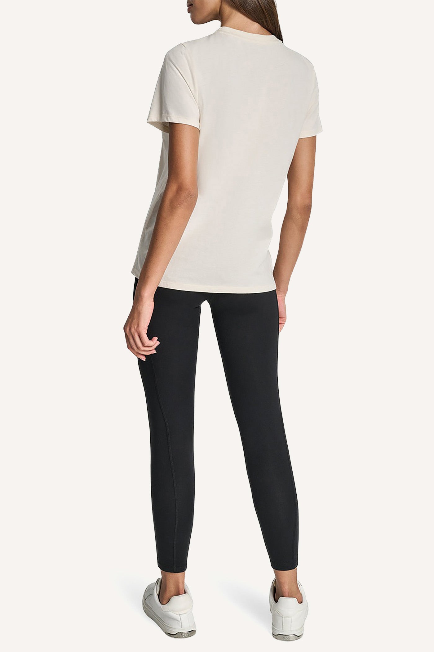 Make a bold statement with the DKNY Graffiti NY Short Sleeve Fit T-Shirt in beige. Featuring modern street-art graphics and a comfortable, tailored silhouette, this versatile top pairs effortlessly with jeans or skirts for everyday urban style and attitude.