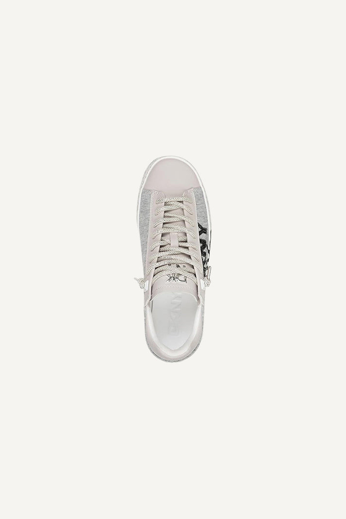 Introducing the GINALI GRAFFITI SNEAKER by DKNY in sleek grey. Perfect for the Holiday24 season, these stylish sneakers blend urban flair with comfortable design, making them a must-have addition to your wardrobe. Elevate your holiday outfits with effortless chic.