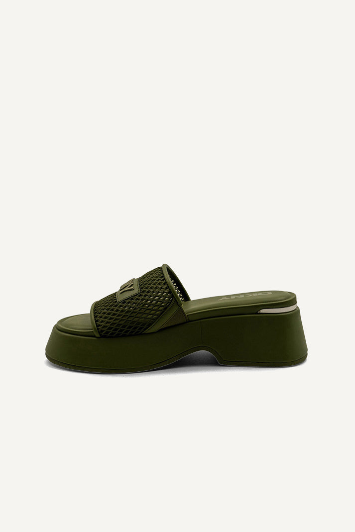 Elevate your style with DKNY's Iredell Platform Slide in vibrant green. These chic shoes blend comfort and sophistication, featuring a sleek design and plush platform sole. Perfect for any occasion, they effortlessly complement your wardrobe, ensuring you stand out.