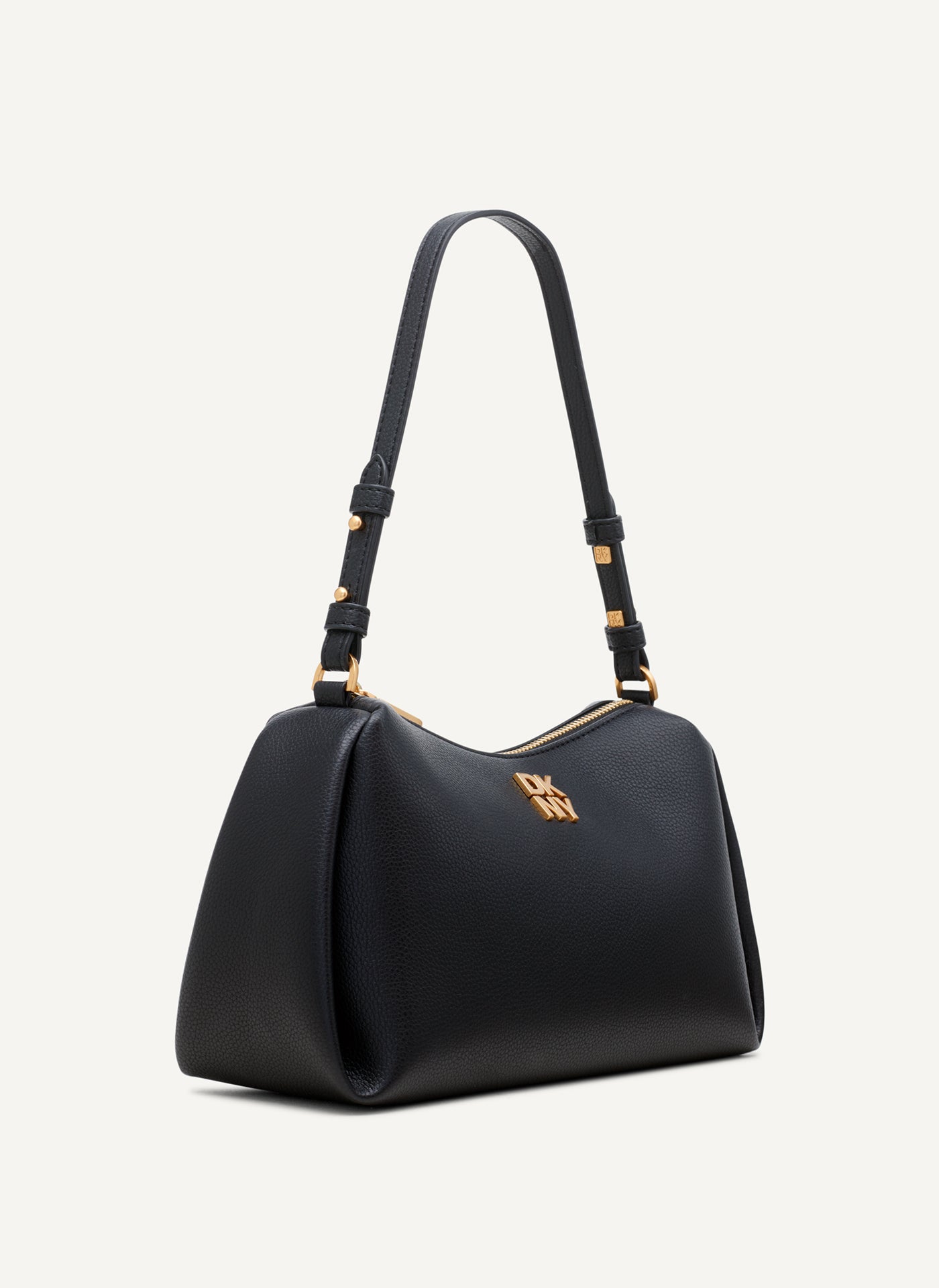 Elevate your elegance with the DKNY REMY TOP ZIP SHOULDER BAG in classic black. Featuring sophisticated design and practical functionality, this sleek bag keeps essentials secure with its top zip closure, making it the perfect accessory for any ensemble.