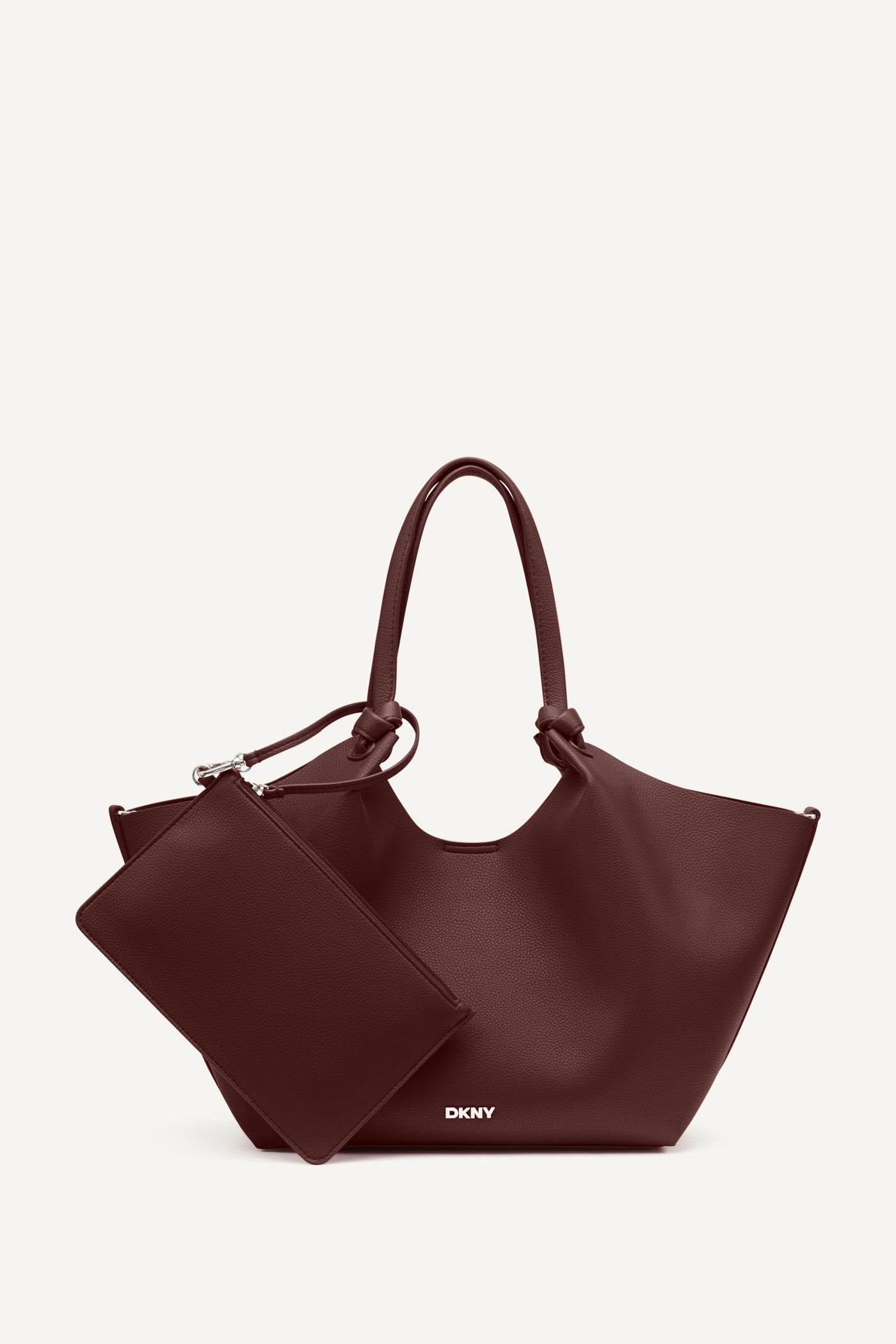 Turn heads with the DKNY Paula Medium Tote in vibrant red. This spacious, expertly crafted tote offers a chic silhouette, sturdy double handles, and luxe gold-tone accents perfect for everyday sophistication, whether at work or out shopping in the city.