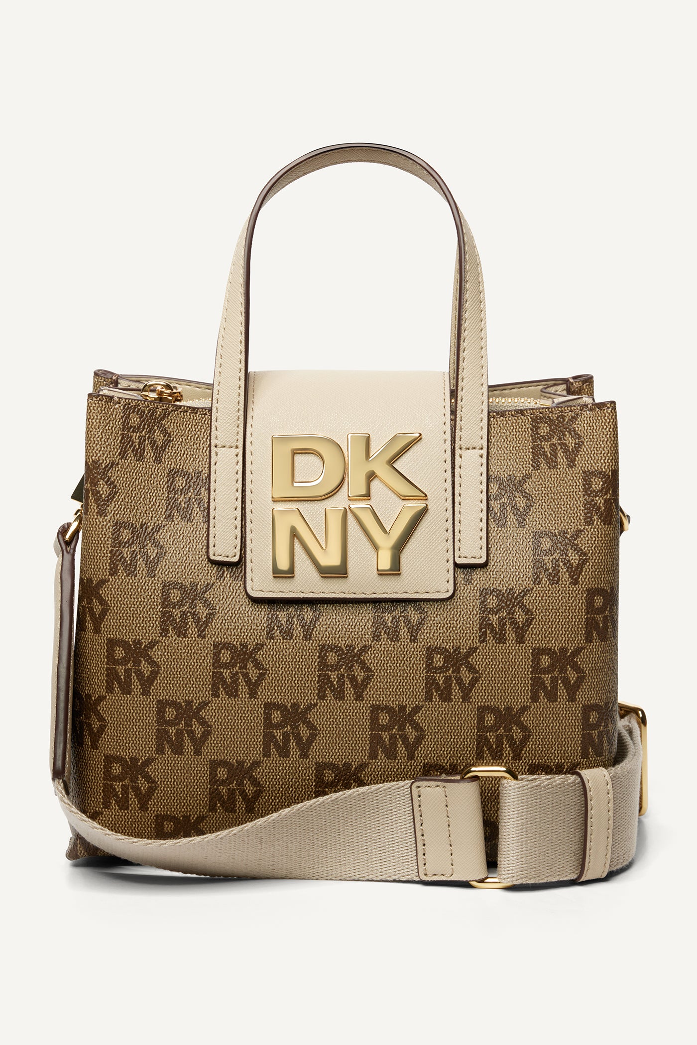 Elevate your style with the DKNY FAYE Small Satchel in elegant beige. This sophisticated top handle bag features a structured silhouette, polished hardware, and a versatile design-perfect for carrying daily essentials while complementing both casual and dressy ensembles.