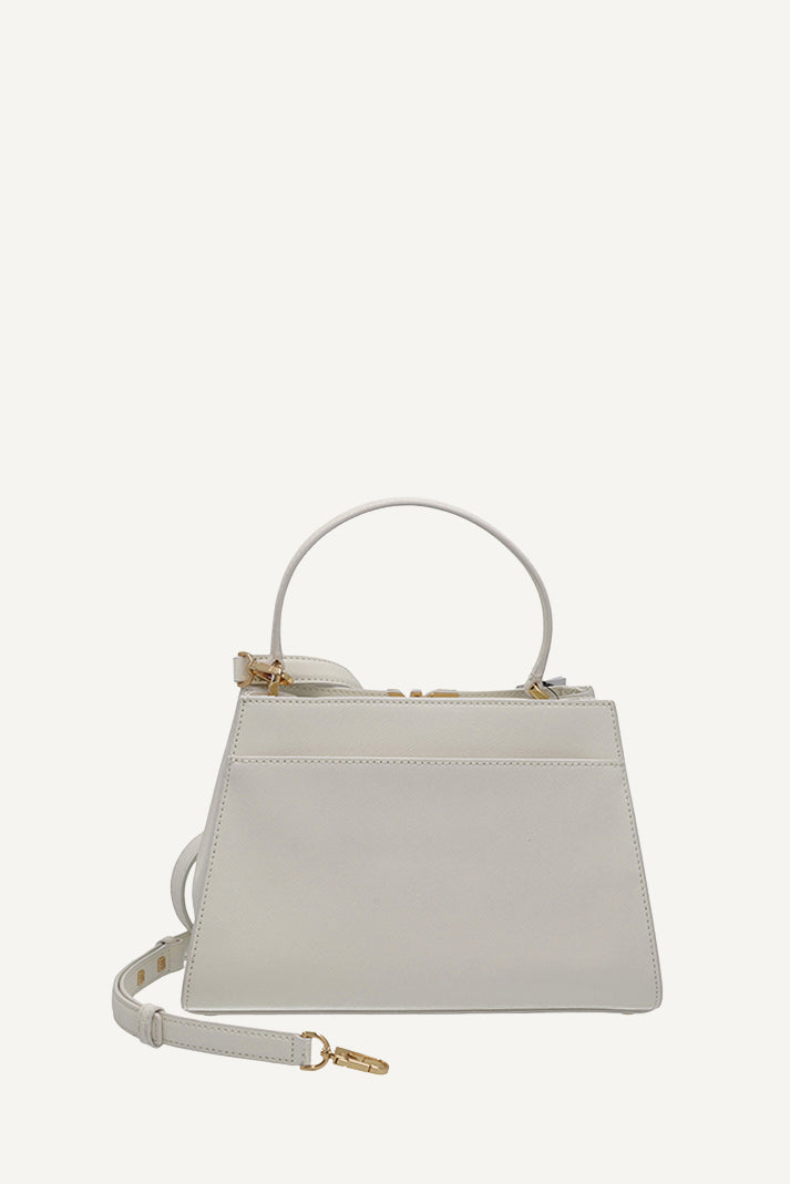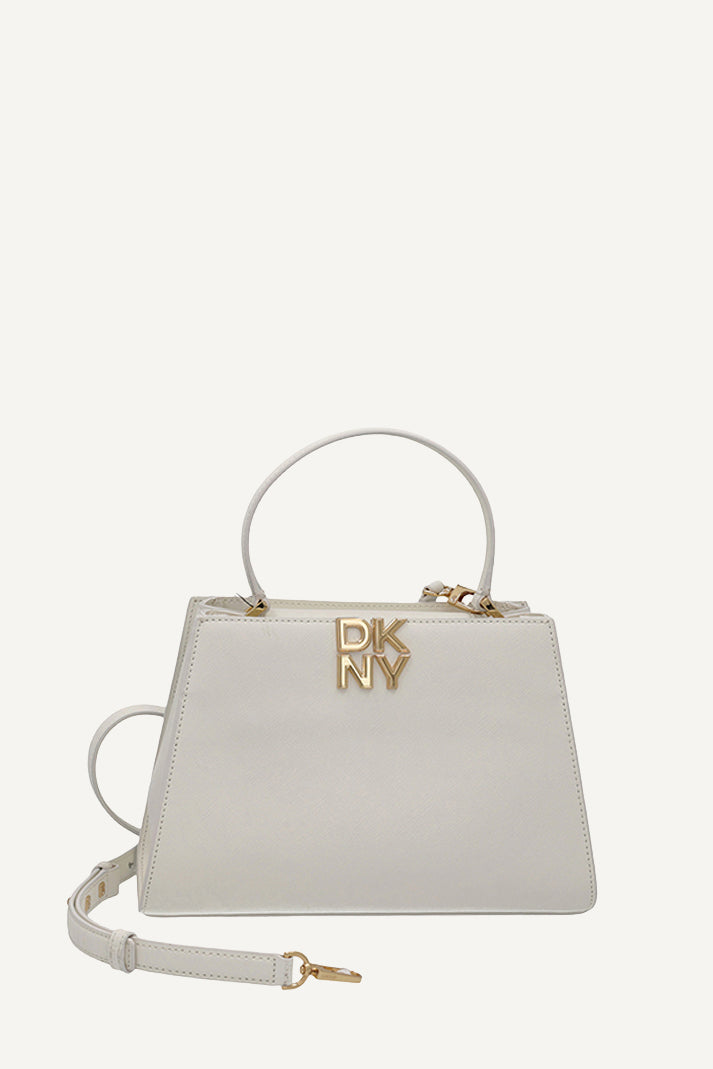 Elevate your style with the DKNY Foster Medium Satchel in pristine white. This elegant top handle bag features structured lines, gold-tone hardware, and a spacious interior-perfect for keeping essentials organized while adding a chic, sophisticated touch to any outfit.